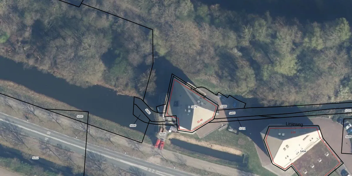 Linieweg 33 is gelegen op kadastraal perceel LDN02E5479. Deze kadastrale aanduiding is uniek en wordt gebruikt door het Kadaster om eigendomsrechten en andere zakelijke rechten vast te leggen. Het perceel maakt onderdeel uit van de kadastrale gemeente Leusden.