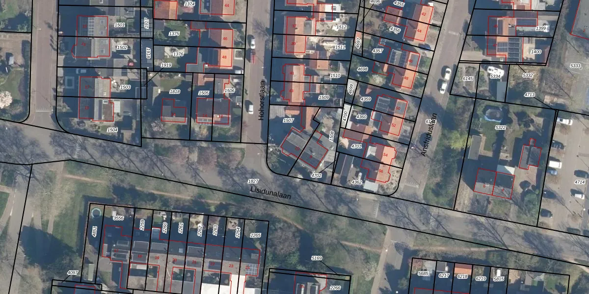 Gebruik de zoekbalk of klik op een perceel voor informatie over de adressen binnen dit perceel.