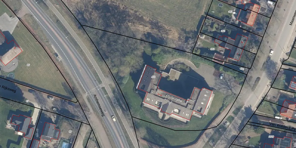 Het adres is gelegen op perceel 433 in de sectie K en de kadastrale gemeente Leusden. De kadastrale aanduiding is aldus LDN02-K-433. De gemiddelde perceeloppervlakte in de kadastrale gemeente Leusden is 3492,5 m². Dit perceel is met zijn 4310 m² dus groter dan gemiddeld. Het grootste perceel in de kadastrale gemeente is 8,56 km². Het kleinste perceel heeft een oppervlakte van 0 m². Op het perceel zijn 13 adressen aanwezig. De laatste wijziging in het de Basisregistratie Kadaster (BRK) was op 23-03-2009.