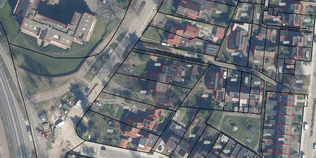 Maanweg 16 is gelegen op kadastraal perceel LDN02D2029. Deze kadastrale aanduiding is uniek en wordt gebruikt door het Kadaster om eigendomsrechten en andere zakelijke rechten vast te leggen. Het perceel maakt onderdeel uit van de kadastrale gemeente Leusden.