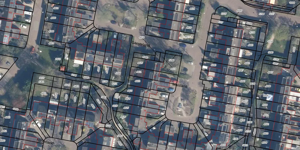 Het perceel waarop Maisland 24 staat heeft een oppervlakte van 200 m². Dit is een middelgroot perceel. De perceeloppervlakte wordt geregistreerd door het Kadaster. Gedetailleerde informatie over de maten van dit perceel kunt u vinden in het rapport Kadastrale kaart met maatvoering van Maisland 24.