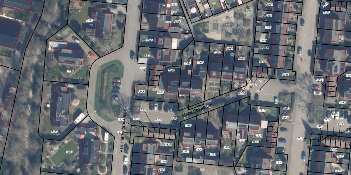 Maria Stuartlaan 1 is gelegen op kadastraal perceel LDN02D1603. Deze kadastrale aanduiding is uniek en wordt gebruikt door het Kadaster om eigendomsrechten en andere zakelijke rechten vast te leggen. Het perceel maakt onderdeel uit van de kadastrale gemeente Leusden.