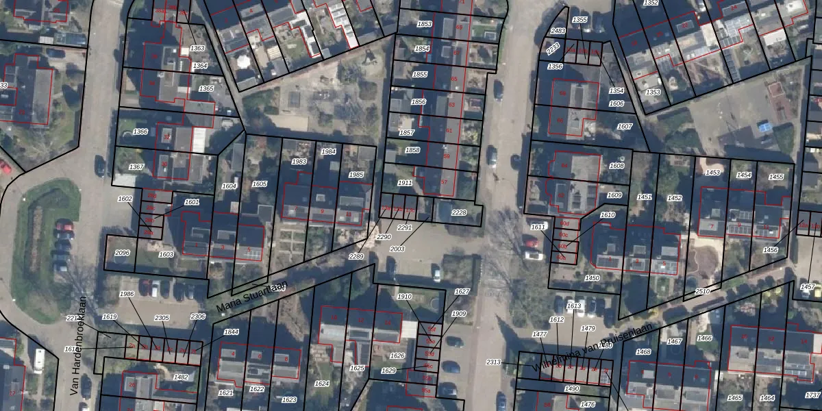 Maria Stuartlaan 13-c is gelegen op kadastraal perceel LDN02D2291. Deze kadastrale aanduiding is uniek en wordt gebruikt door het Kadaster om eigendomsrechten en andere zakelijke rechten vast te leggen. Het perceel maakt onderdeel uit van de kadastrale gemeente Leusden.
