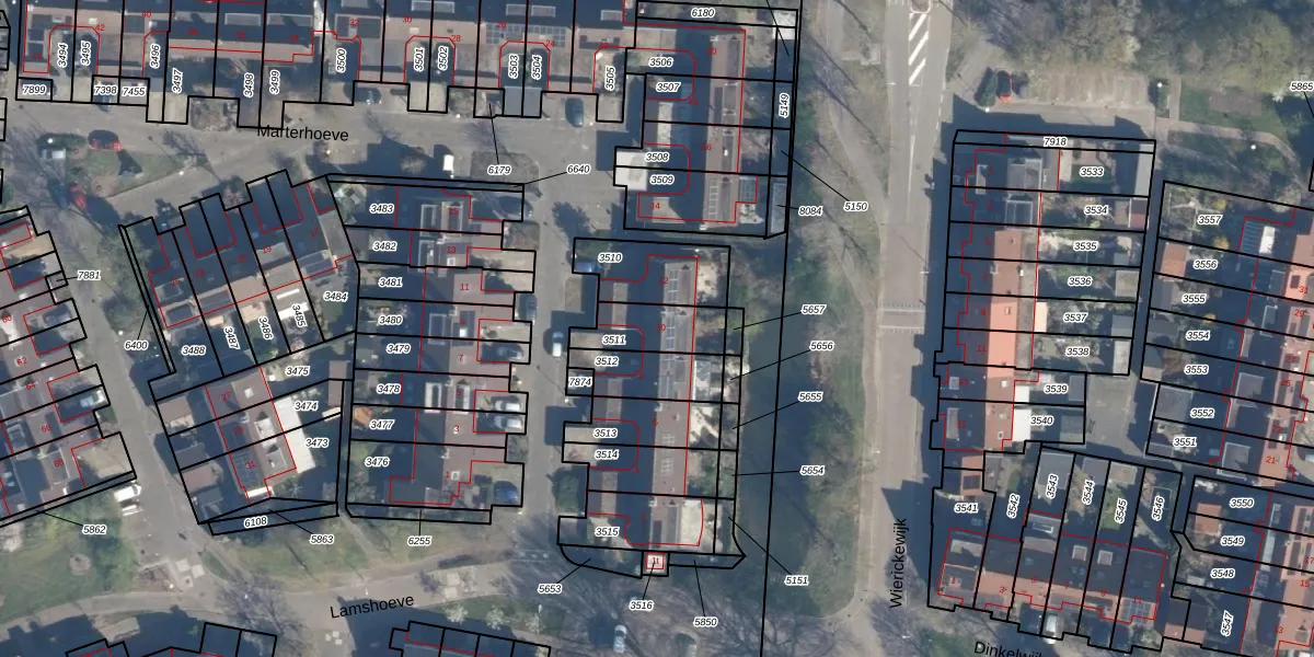 Gebruik de zoekbalk of klik op een perceel voor informatie over de adressen binnen dit perceel.