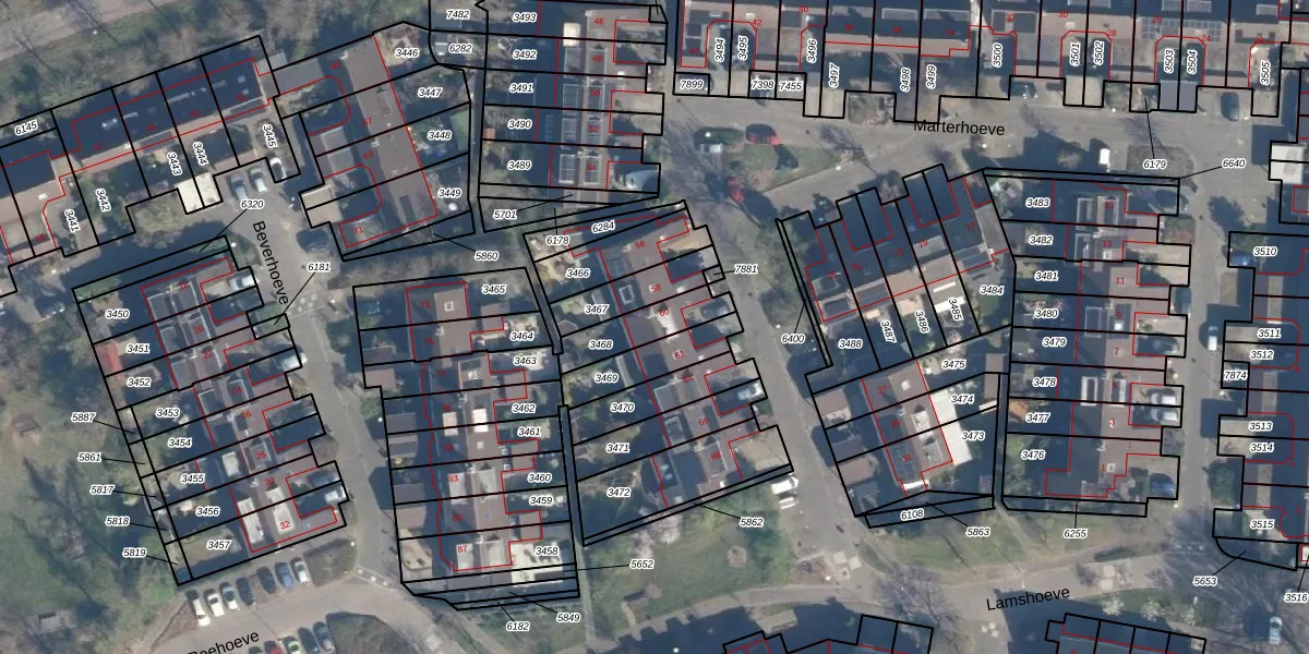 Gebruik de zoekbalk of klik op een perceel voor informatie over de adressen binnen dit perceel.