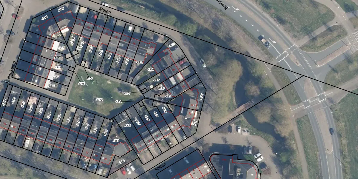 Maten 15 is gelegen op kadastraal perceel LDN02E4333. Deze kadastrale aanduiding is uniek en wordt gebruikt door het Kadaster om eigendomsrechten en andere zakelijke rechten vast te leggen. Het perceel maakt onderdeel uit van de kadastrale gemeente Leusden.