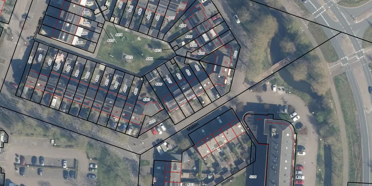 Maten 5 is gelegen op kadastraal perceel LDN02E4328. Deze kadastrale aanduiding is uniek en wordt gebruikt door het Kadaster om eigendomsrechten en andere zakelijke rechten vast te leggen. Het perceel maakt onderdeel uit van de kadastrale gemeente Leusden.