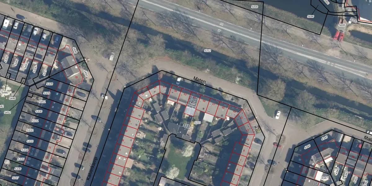 Het perceel waarop Maten 53 staat heeft een oppervlakte van 4490 m². Dit is een zeer groot perceel. De perceeloppervlakte wordt geregistreerd door het Kadaster. Gedetailleerde informatie over de maten van dit perceel kunt u vinden in het rapport Kadastrale kaart met maatvoering van Maten 53.