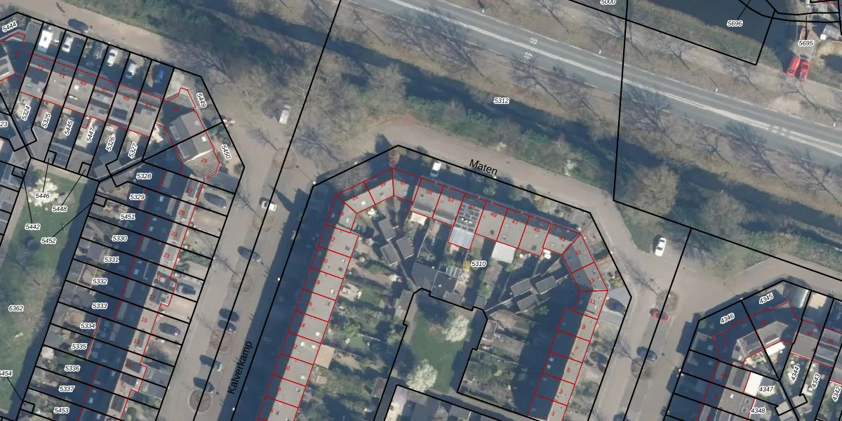 Het perceel waarop Maten 55 staat heeft een oppervlakte van 4490 m². Dit is een zeer groot perceel. De perceeloppervlakte wordt geregistreerd door het Kadaster. Gedetailleerde informatie over de maten van dit perceel kunt u vinden in het rapport Kadastrale kaart met maatvoering van Maten 55.