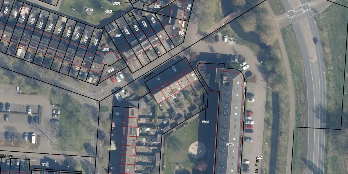 Het perceel waarop Maten 6 staat heeft een oppervlakte van 3005 m². Dit is een zeer groot perceel. De perceeloppervlakte wordt geregistreerd door het Kadaster. Gedetailleerde informatie over de maten van dit perceel kunt u vinden in het rapport Kadastrale kaart met maatvoering van Maten 6.
