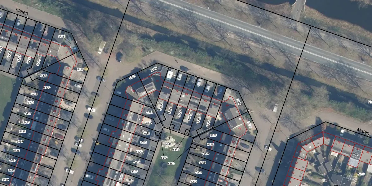 Het perceel waarop Maten 69 staat heeft een oppervlakte van 165 m². Dit is een middelgroot perceel. De perceeloppervlakte wordt geregistreerd door het Kadaster. Gedetailleerde informatie over de maten van dit perceel kunt u vinden in het rapport Kadastrale kaart met maatvoering van Maten 69.