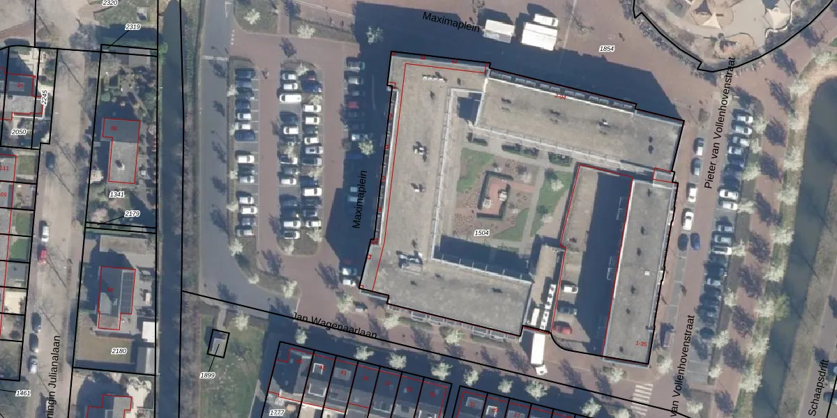 Maximaplein 14 is gelegen op kadastraal perceel LDN02I1504. Deze kadastrale aanduiding is uniek en wordt gebruikt door het Kadaster om eigendomsrechten en andere zakelijke rechten vast te leggen. Het perceel maakt onderdeel uit van de kadastrale gemeente Leusden.