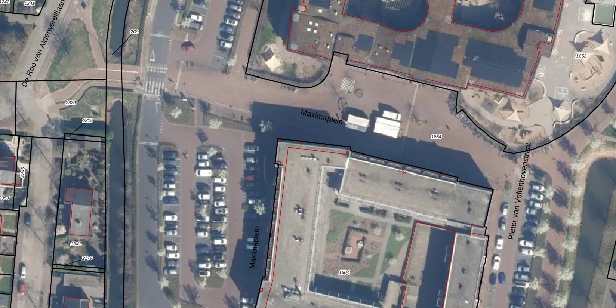 Het perceel waarop Maximaplein 30 staat heeft een oppervlakte van 4230 m². Dit is een zeer groot perceel. De perceeloppervlakte wordt geregistreerd door het Kadaster. Gedetailleerde informatie over de maten van dit perceel kunt u vinden in het rapport Kadastrale kaart met maatvoering van Maximaplein 30.