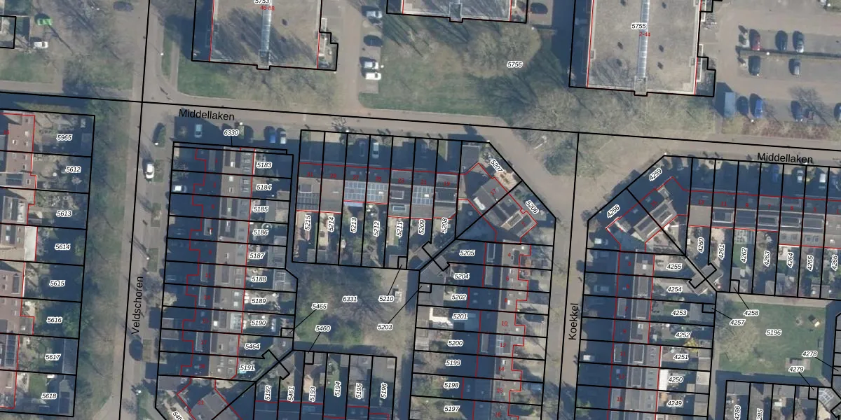 Het perceel waarop Middellaken 21 staat heeft een oppervlakte van 163 m². Dit is een middelgroot perceel. De perceeloppervlakte wordt geregistreerd door het Kadaster. Gedetailleerde informatie over de maten van dit perceel kunt u vinden in het rapport Kadastrale kaart met maatvoering van Middellaken 21.