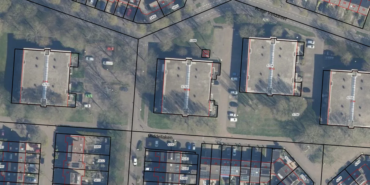 Het perceel waarop Middellaken 48 staat heeft een oppervlakte van 962 m². Dit is een groot perceel. De perceeloppervlakte wordt geregistreerd door het Kadaster. Gedetailleerde informatie over de maten van dit perceel kunt u vinden in het rapport Kadastrale kaart met maatvoering van Middellaken 48.