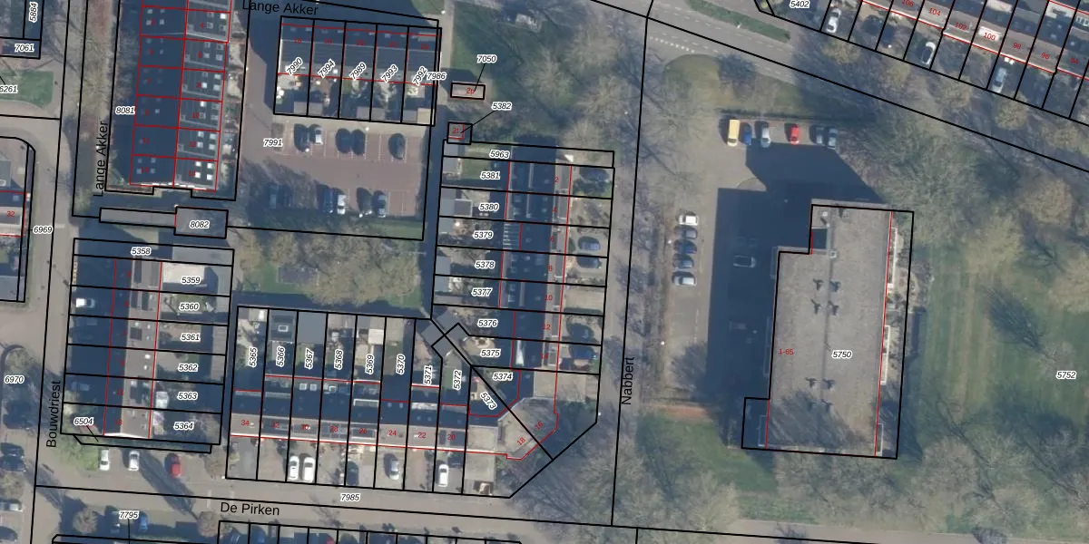 Gebruik de zoekbalk of klik op een perceel voor informatie over de adressen binnen dit perceel.