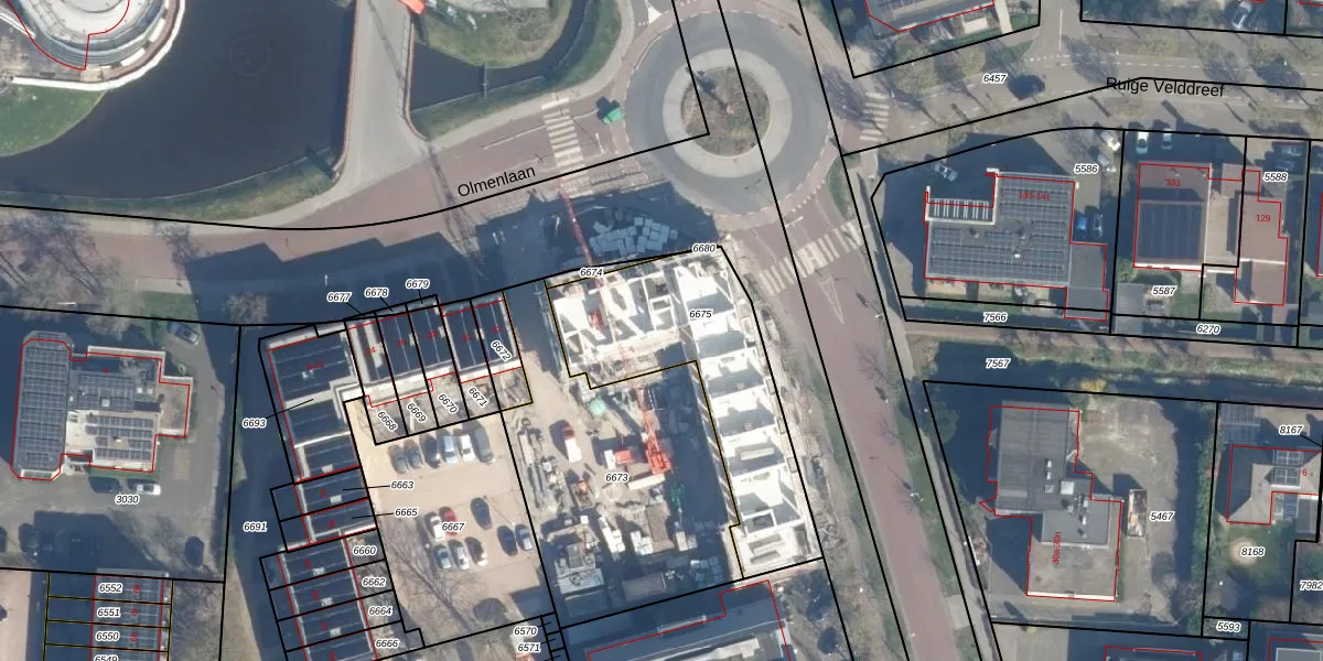 Olmenlaan 54 is gelegen op kadastraal perceel LDN02E6675. Deze kadastrale aanduiding is uniek en wordt gebruikt door het Kadaster om eigendomsrechten en andere zakelijke rechten vast te leggen. Het perceel maakt onderdeel uit van de kadastrale gemeente Leusden.