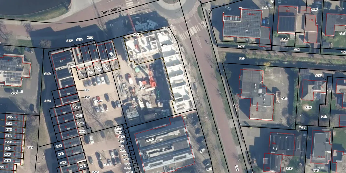 Olmenlaan 82 is gelegen op kadastraal perceel LDN02E6675. Deze kadastrale aanduiding is uniek en wordt gebruikt door het Kadaster om eigendomsrechten en andere zakelijke rechten vast te leggen. Het perceel maakt onderdeel uit van de kadastrale gemeente Leusden.