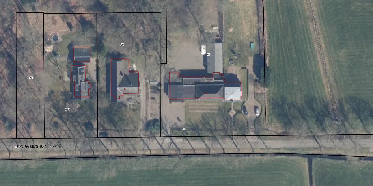 Het perceel waarop Ooievaarshorsterweg 4 staat heeft een oppervlakte van 4850 m². Dit is een zeer groot perceel. De perceeloppervlakte wordt geregistreerd door het Kadaster. Gedetailleerde informatie over de maten van dit perceel kunt u vinden in het rapport Kadastrale kaart met maatvoering van Ooievaarshorsterweg 4.