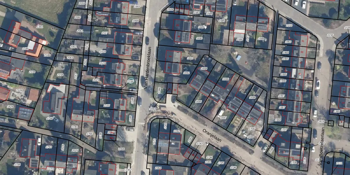 Het perceel waarop Oranjelaan 1-b staat heeft een oppervlakte van 296 m². Dit is een middelgroot perceel. De perceeloppervlakte wordt geregistreerd door het Kadaster. Gedetailleerde informatie over de maten van dit perceel kunt u vinden in het rapport Kadastrale kaart met maatvoering van Oranjelaan 1-b.