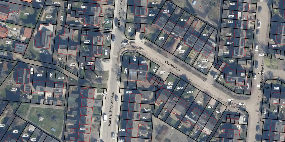 Oranjelaan 4 is gelegen op kadastraal perceel LDN02D2282. Deze kadastrale aanduiding is uniek en wordt gebruikt door het Kadaster om eigendomsrechten en andere zakelijke rechten vast te leggen. Het perceel maakt onderdeel uit van de kadastrale gemeente Leusden.
