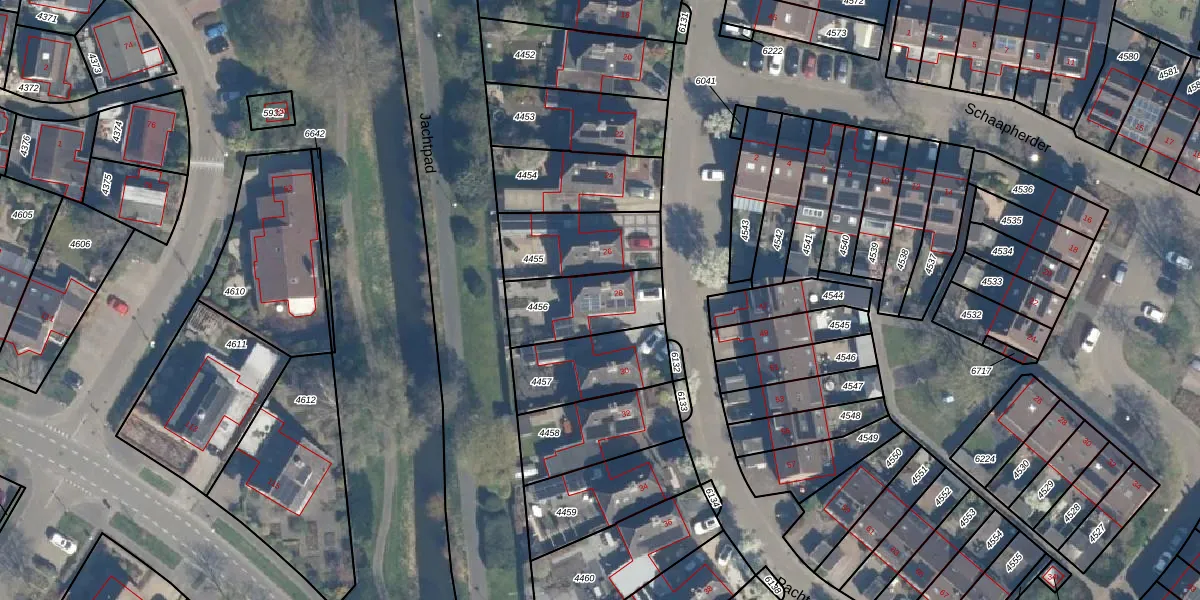 Gebruik de zoekbalk of klik op een perceel voor informatie over de adressen binnen dit perceel.