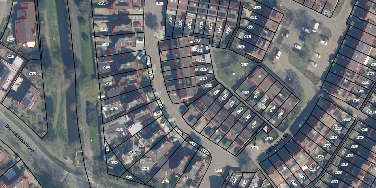 Het perceel waarop Pachter 57 staat heeft een oppervlakte van 165 m². Dit is een middelgroot perceel. De perceeloppervlakte wordt geregistreerd door het Kadaster. Gedetailleerde informatie over de maten van dit perceel kunt u vinden in het rapport Kadastrale kaart met maatvoering van Pachter 57.
