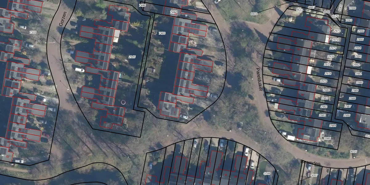 Het perceel waarop Parelduiker 5 staat heeft een oppervlakte van 2165 m². Dit is een zeer groot perceel. De perceeloppervlakte wordt geregistreerd door het Kadaster. Gedetailleerde informatie over de maten van dit perceel kunt u vinden in het rapport Kadastrale kaart met maatvoering van Parelduiker 5.