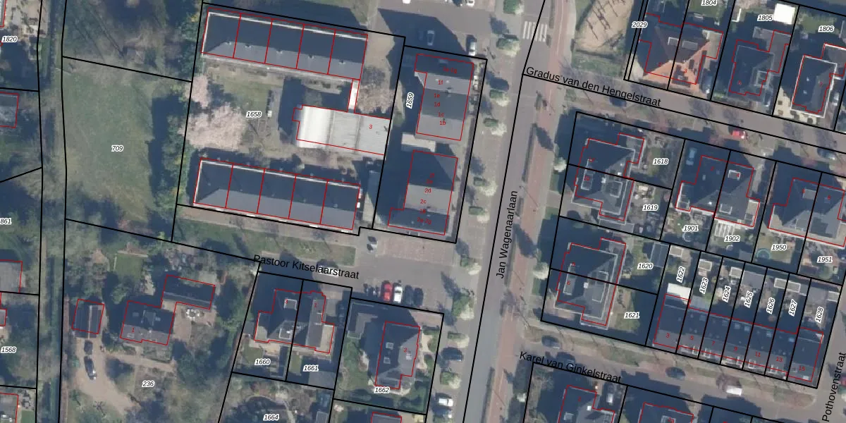Pastoor Kitselaarstraat 2-b is gelegen op kadastraal perceel LDN02I1659. Deze kadastrale aanduiding is uniek en wordt gebruikt door het Kadaster om eigendomsrechten en andere zakelijke rechten vast te leggen. Het perceel maakt onderdeel uit van de kadastrale gemeente Leusden.