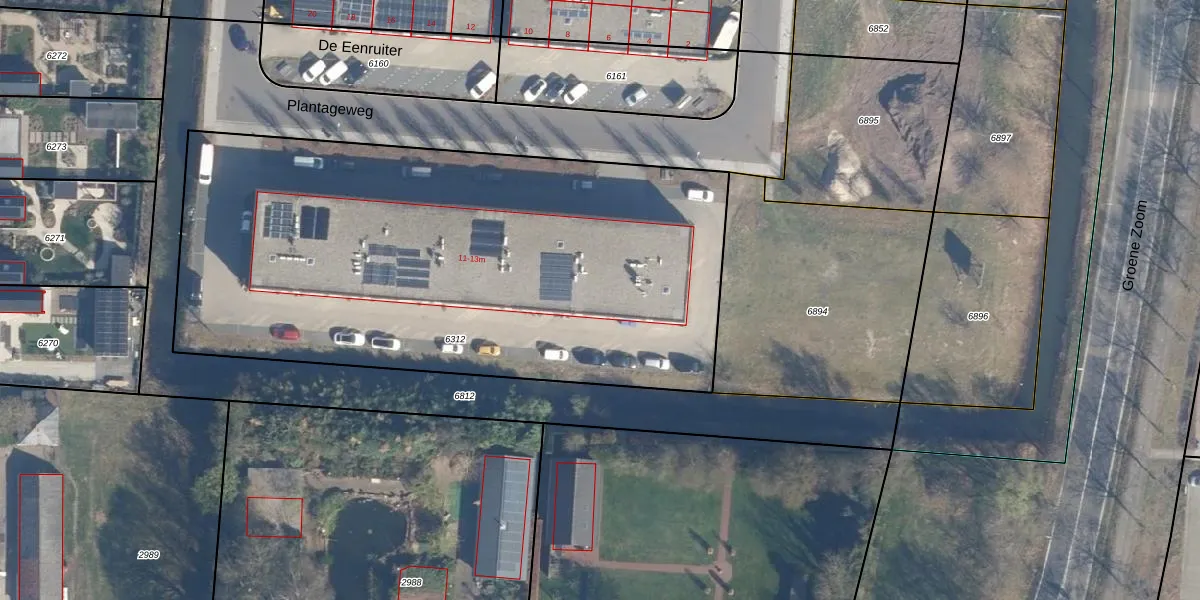 Plantageweg 13-b is gelegen op kadastraal perceel LDN02E6312. Deze kadastrale aanduiding is uniek en wordt gebruikt door het Kadaster om eigendomsrechten en andere zakelijke rechten vast te leggen. Het perceel maakt onderdeel uit van de kadastrale gemeente Leusden.
