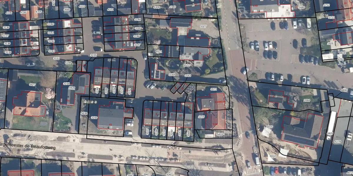 Gebruik de zoekbalk of klik op een perceel voor informatie over de adressen binnen dit perceel.