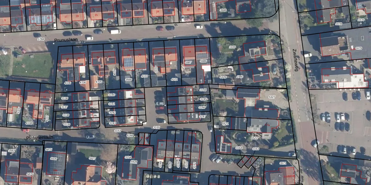 Gebruik de zoekbalk of klik op een perceel voor informatie over de adressen binnen dit perceel.