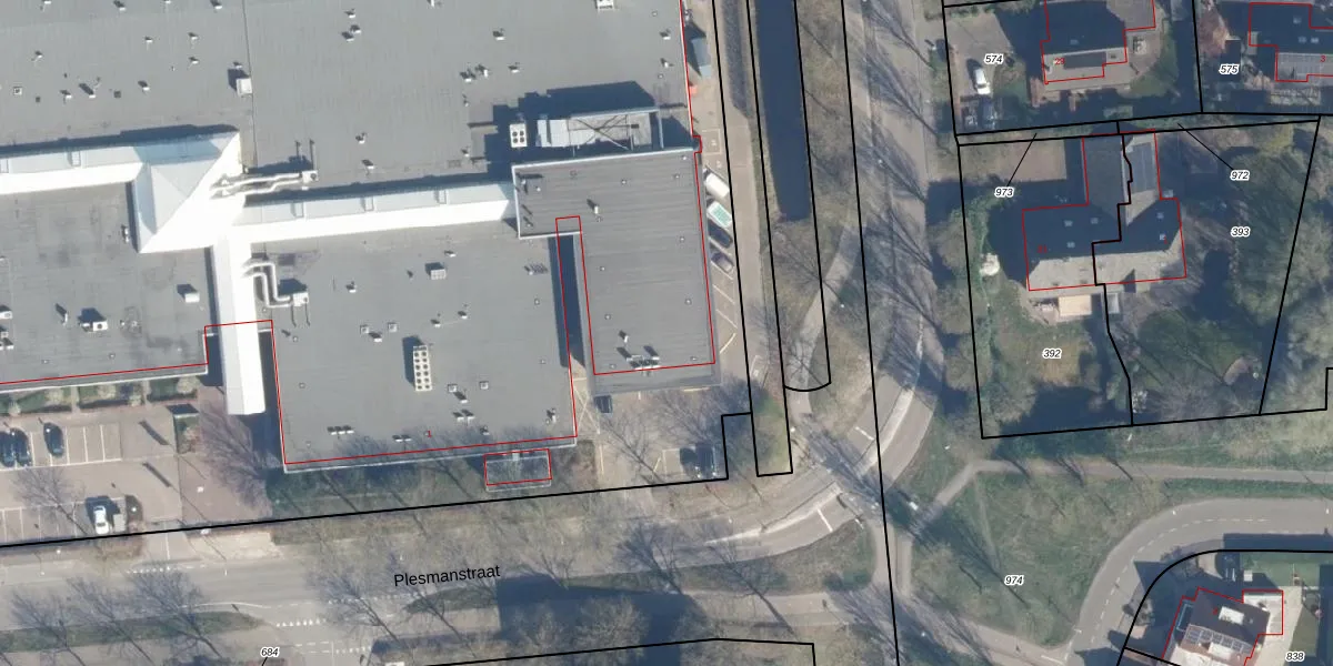 Het perceel waarop Plesmanstraat 63 staat heeft een oppervlakte van 2,3 ha. Dit is een zeer groot perceel. De perceeloppervlakte wordt geregistreerd door het Kadaster. Gedetailleerde informatie over de maten van dit perceel kunt u vinden in het rapport Kadastrale kaart met maatvoering van Plesmanstraat 63.