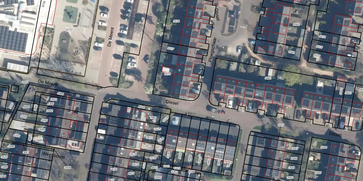 Het perceel waarop Ploegschaar 1 staat heeft een oppervlakte van 594 m². Dit is een groot perceel. De perceeloppervlakte wordt geregistreerd door het Kadaster. Gedetailleerde informatie over de maten van dit perceel kunt u vinden in het rapport Kadastrale kaart met maatvoering van Ploegschaar 1.