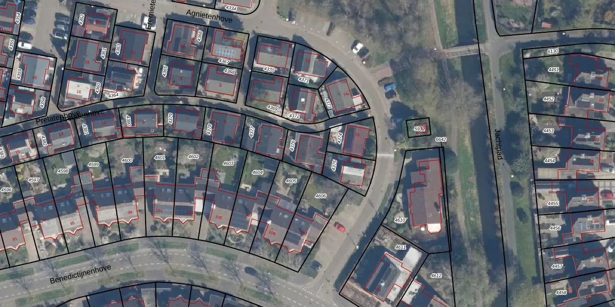 Het perceel waarop Prelatenhove 1 staat heeft een oppervlakte van 168 m². Dit is een middelgroot perceel. De perceeloppervlakte wordt geregistreerd door het Kadaster. Gedetailleerde informatie over de maten van dit perceel kunt u vinden in het rapport Kadastrale kaart met maatvoering van Prelatenhove 1.