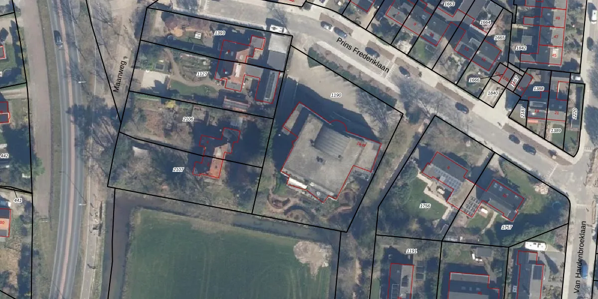 Het perceel waarop Prins Frederiklaan 4-c staat heeft een oppervlakte van 1890 m². Dit is een zeer groot perceel. De perceeloppervlakte wordt geregistreerd door het Kadaster. Gedetailleerde informatie over de maten van dit perceel kunt u vinden in het rapport Kadastrale kaart met maatvoering van Prins Frederiklaan 4-c.