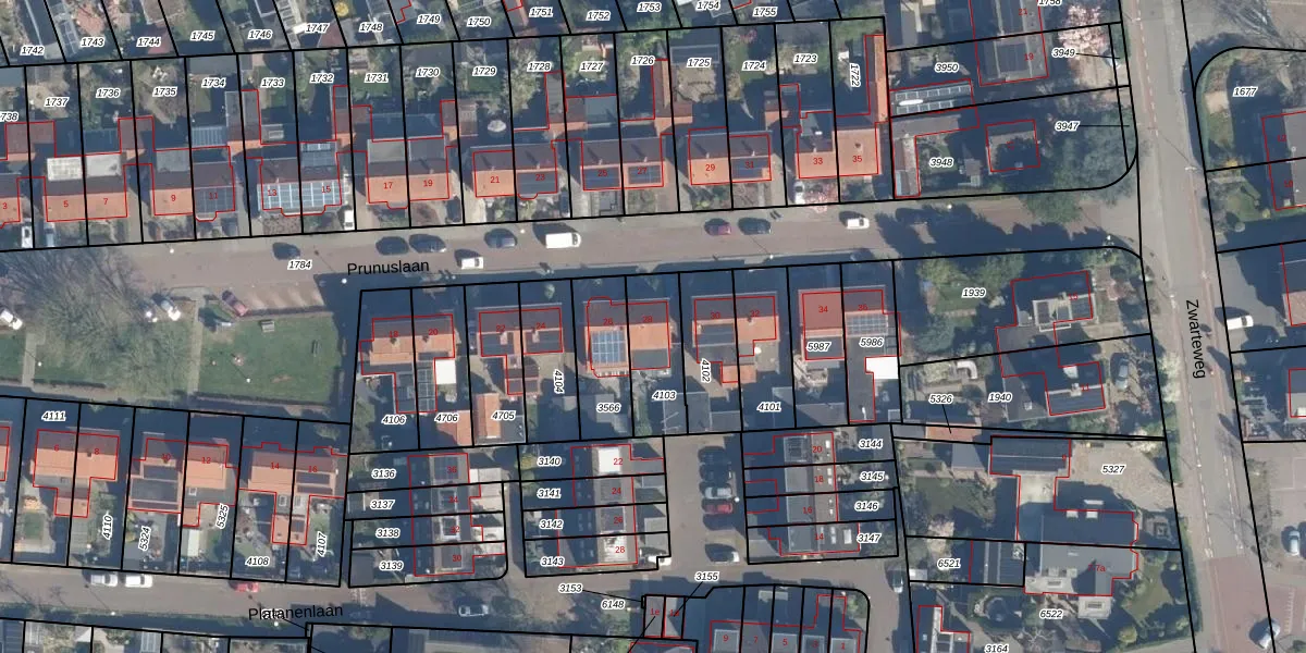 Gebruik de zoekbalk of klik op een perceel voor informatie over de adressen binnen dit perceel.