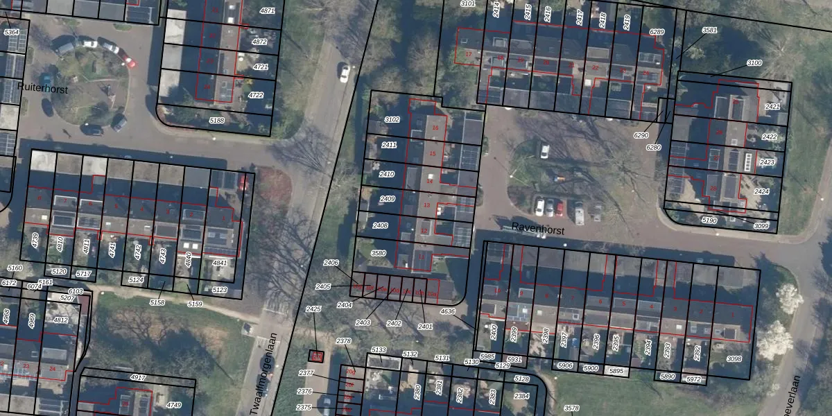 Het perceel waarop Ravenhorst 13 staat heeft een oppervlakte van 172 m². Dit is een middelgroot perceel. De perceeloppervlakte wordt geregistreerd door het Kadaster. Gedetailleerde informatie over de maten van dit perceel kunt u vinden in het rapport Kadastrale kaart met maatvoering van Ravenhorst 13.