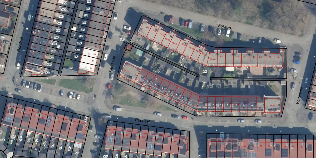 Het perceel waarop Rondeel 35 staat heeft een oppervlakte van 4421 m². Dit is een zeer groot perceel. De perceeloppervlakte wordt geregistreerd door het Kadaster. Gedetailleerde informatie over de maten van dit perceel kunt u vinden in het rapport Kadastrale kaart met maatvoering van Rondeel 35.