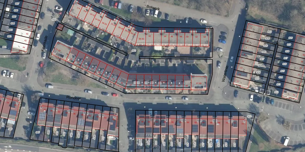 Het perceel waarop Rondeel 55 staat heeft een oppervlakte van 4421 m². Dit is een zeer groot perceel. De perceeloppervlakte wordt geregistreerd door het Kadaster. Gedetailleerde informatie over de maten van dit perceel kunt u vinden in het rapport Kadastrale kaart met maatvoering van Rondeel 55.