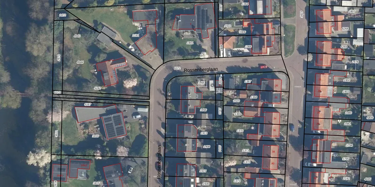 Het perceel waarop Rossenberglaan 1 staat heeft een oppervlakte van 327 m². Dit is een groot perceel. De perceeloppervlakte wordt geregistreerd door het Kadaster. Gedetailleerde informatie over de maten van dit perceel kunt u vinden in het rapport Kadastrale kaart met maatvoering van Rossenberglaan 1.