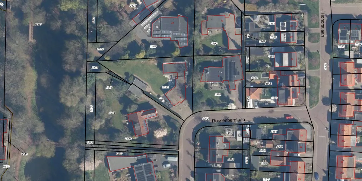 Het perceel waarop Rossenberglaan 4 staat heeft een oppervlakte van 1042 m². Dit is een zeer groot perceel. De perceeloppervlakte wordt geregistreerd door het Kadaster. Gedetailleerde informatie over de maten van dit perceel kunt u vinden in het rapport Kadastrale kaart met maatvoering van Rossenberglaan 4.