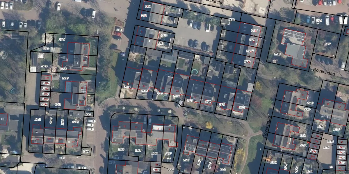 Gebruik de zoekbalk of klik op een perceel voor informatie over de adressen binnen dit perceel.