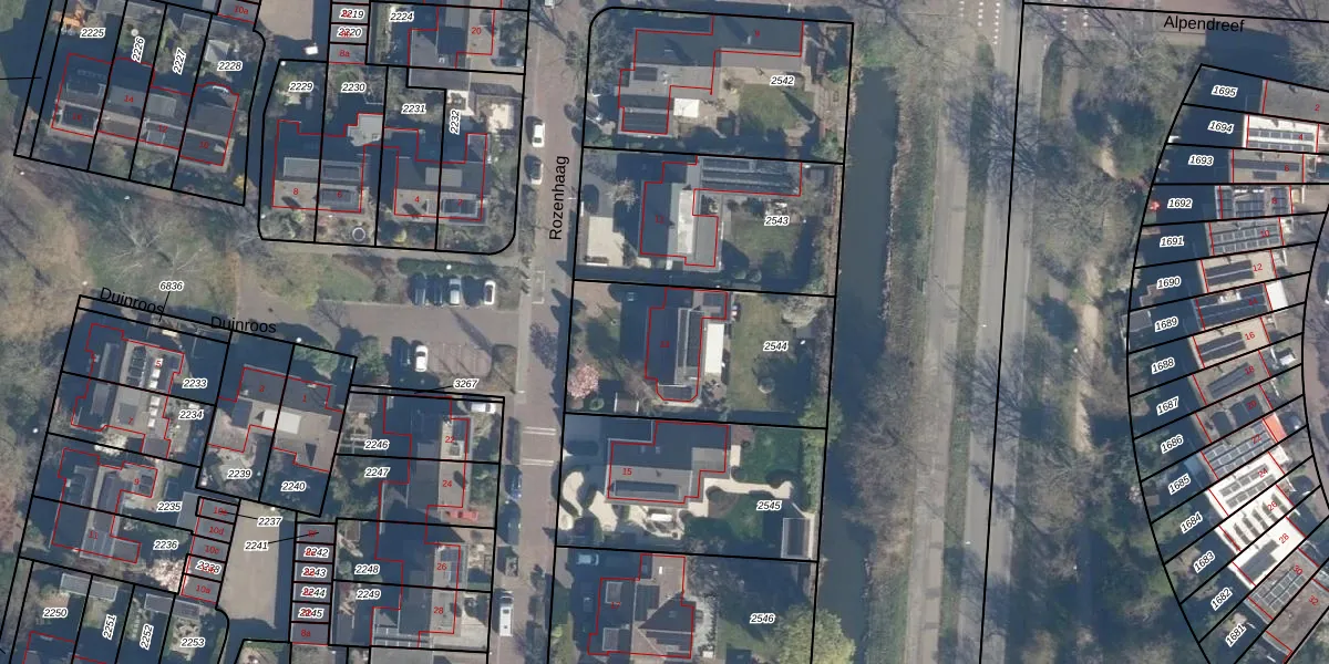 Rozenhaag 13 is gelegen op kadastraal perceel LDN02F2544. Deze kadastrale aanduiding is uniek en wordt gebruikt door het Kadaster om eigendomsrechten en andere zakelijke rechten vast te leggen. Het perceel maakt onderdeel uit van de kadastrale gemeente Leusden.