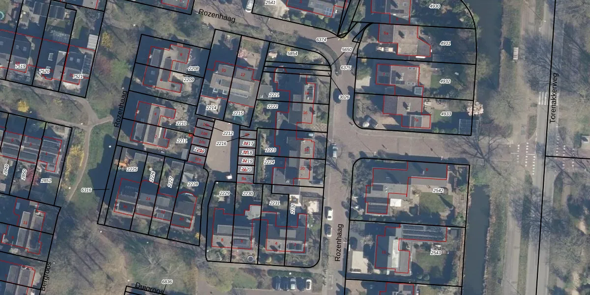 Het perceel waarop Rozenhaag 18 staat heeft een oppervlakte van 226 m². Dit is een middelgroot perceel. De perceeloppervlakte wordt geregistreerd door het Kadaster. Gedetailleerde informatie over de maten van dit perceel kunt u vinden in het rapport Kadastrale kaart met maatvoering van Rozenhaag 18.