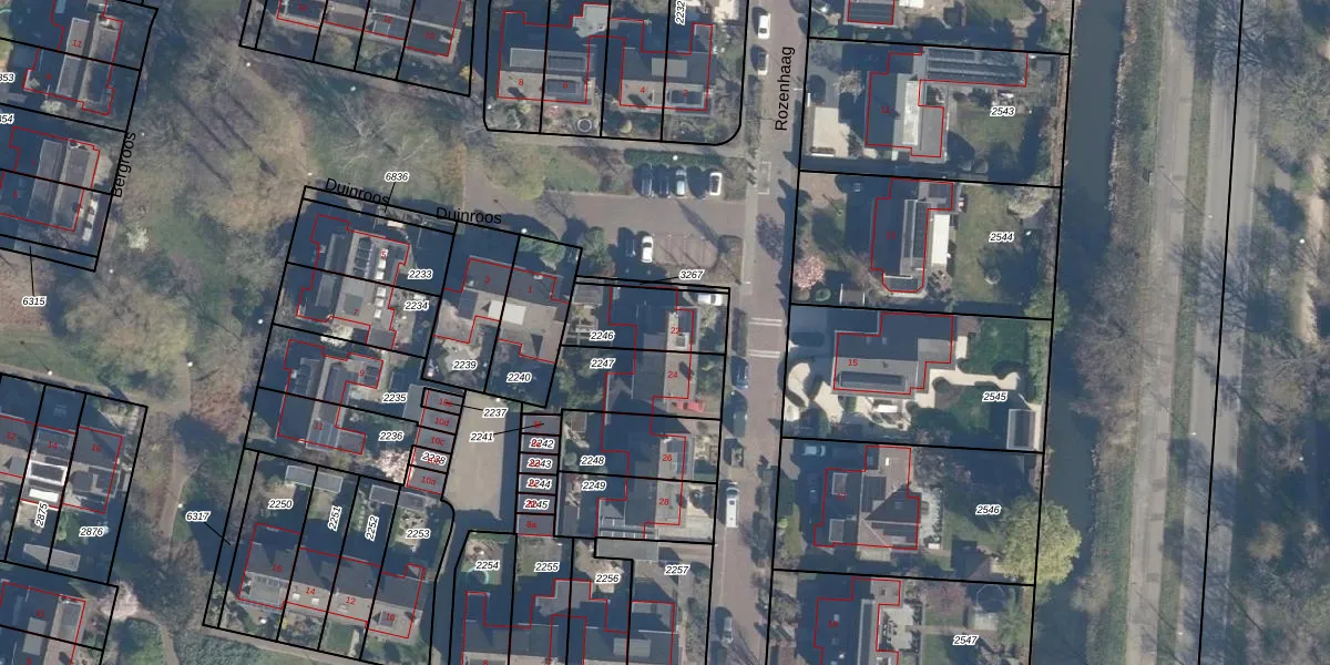 Gebruik de zoekbalk of klik op een perceel voor informatie over de adressen binnen dit perceel.