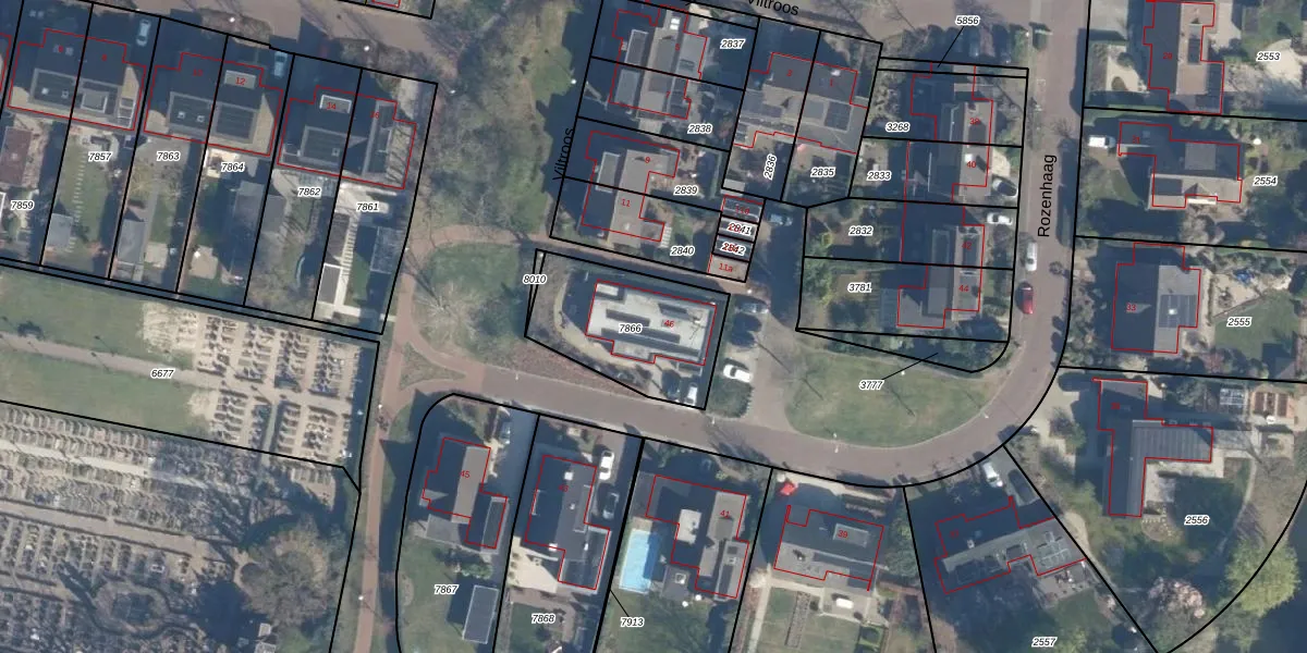 Rozenhaag 46 is gelegen op kadastraal perceel LDN02F7866. Deze kadastrale aanduiding is uniek en wordt gebruikt door het Kadaster om eigendomsrechten en andere zakelijke rechten vast te leggen. Het perceel maakt onderdeel uit van de kadastrale gemeente Leusden.