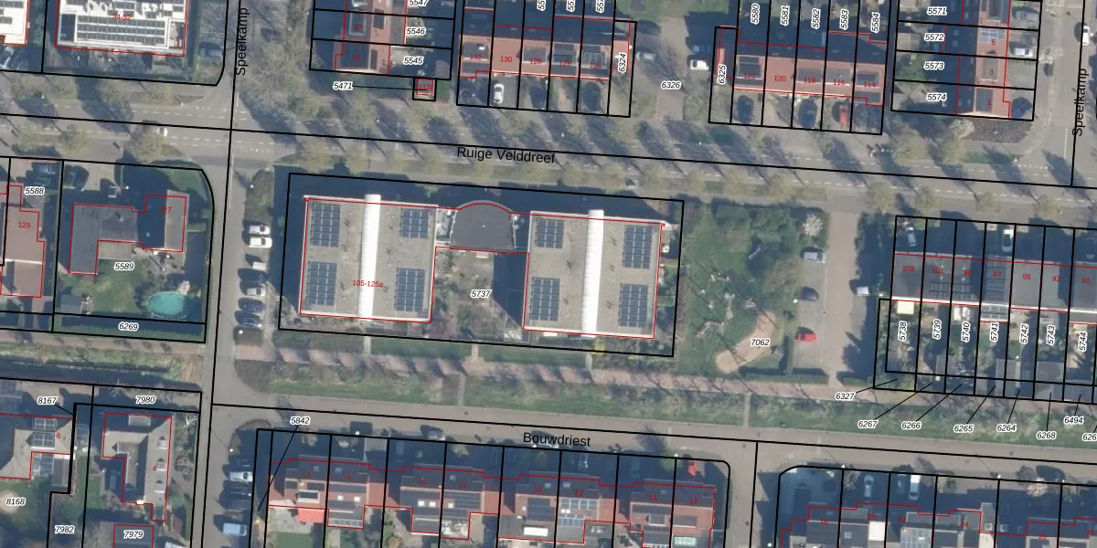 Het perceel waarop Ruige Velddreef 109-a staat heeft een oppervlakte van 2049 m². Dit is een zeer groot perceel. De perceeloppervlakte wordt geregistreerd door het Kadaster. Gedetailleerde informatie over de maten van dit perceel kunt u vinden in het rapport Kadastrale kaart met maatvoering van Ruige Velddreef 109-a.