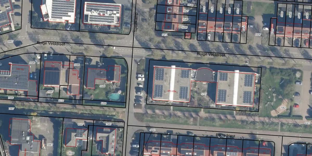 Ruige Velddreef 115 is gelegen op kadastraal perceel LDN02F5737. Deze kadastrale aanduiding is uniek en wordt gebruikt door het Kadaster om eigendomsrechten en andere zakelijke rechten vast te leggen. Het perceel maakt onderdeel uit van de kadastrale gemeente Leusden.