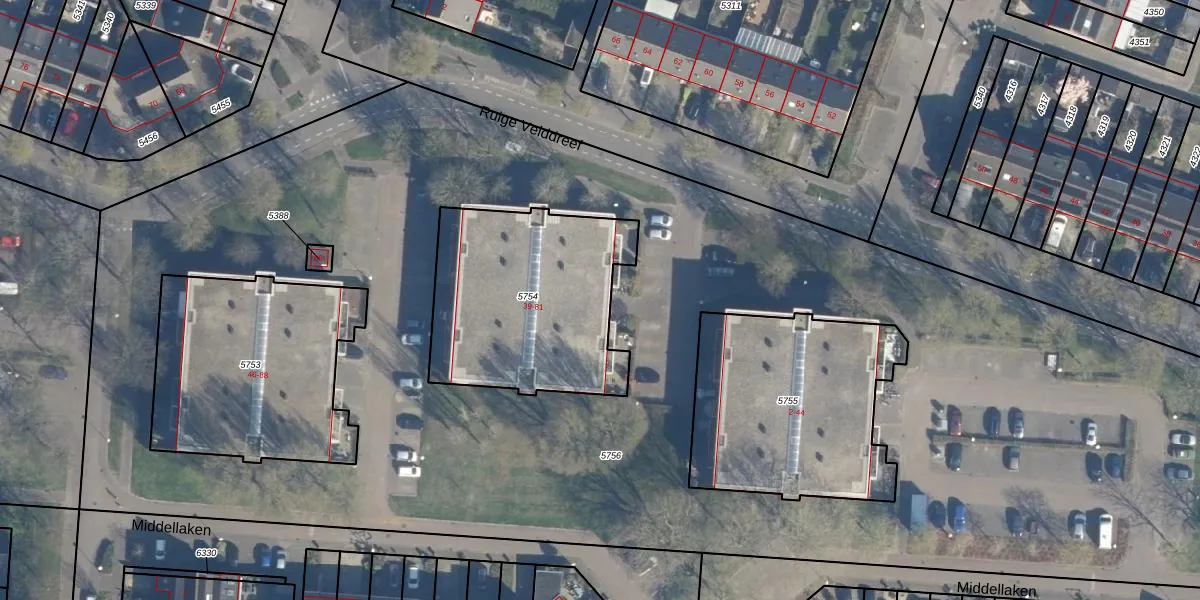 Het perceel waarop Ruige Velddreef 55 staat heeft een oppervlakte van 934 m². Dit is een groot perceel. De perceeloppervlakte wordt geregistreerd door het Kadaster. Gedetailleerde informatie over de maten van dit perceel kunt u vinden in het rapport Kadastrale kaart met maatvoering van Ruige Velddreef 55.